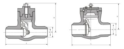 H64Y typ 1500 (Lb) ~ 2500 (Lb) wysokotemperaturowy zawór zwrotny do zgrzewania doczołowego dla klasy 1500 ~ 2500Lb, temperatura robocza -29 ~ 570 ℃ elektrownie naftowe, chemiczne, cieplne i inne warunki rurociągu.